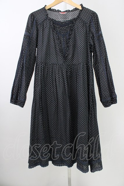 PINK HOUSE / ドット長袖ワンピース ブラック T-25-11-09-040-LO-OP-SA-ZT400