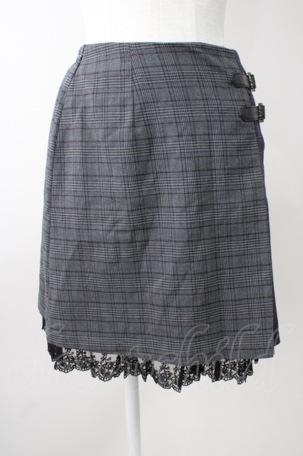 axes femme POETIQUE / パッチワーク切替えミニスカート M チャコール T-25-11-09-050-AX-SK-SA-ZT418