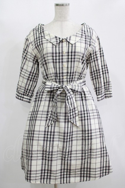 MAJESTIC LEGON / ウエストリボン付きチェックワンピース M アイボリー H-25-11-15-1028-LO-OP-NS-ZH