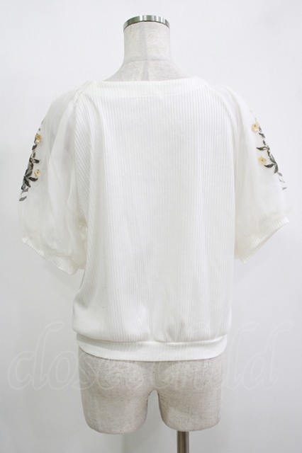 axes femme / 花刺繍×チュール袖プルオーバー M オフ H-25-11-15-1063-AX-TO-NS-ZH