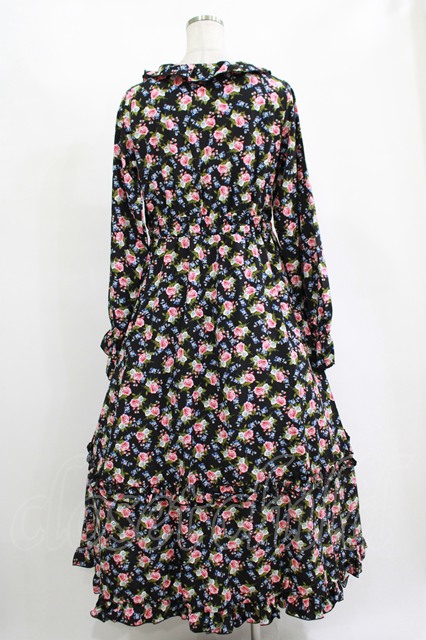 FLC / 星名桜子/2WAY花柄フリルワンピース L ブラック H-25-11-15-1007-LO-OP-NS-ZH