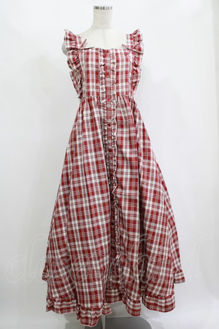 FLC / 皆方由衣コラボ/チェックフリルジャンパースカート L レッド H-25-11-15-1021-LO-OP-NS-ZH