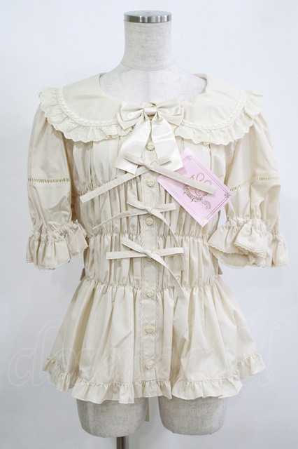 metamorphose / 【プラスサイズ】ハートレースシャーリング半袖ブラウス プラスサイズ 生成り H-25-11-15-1048-ME-BL-NS-ZH [戻る]