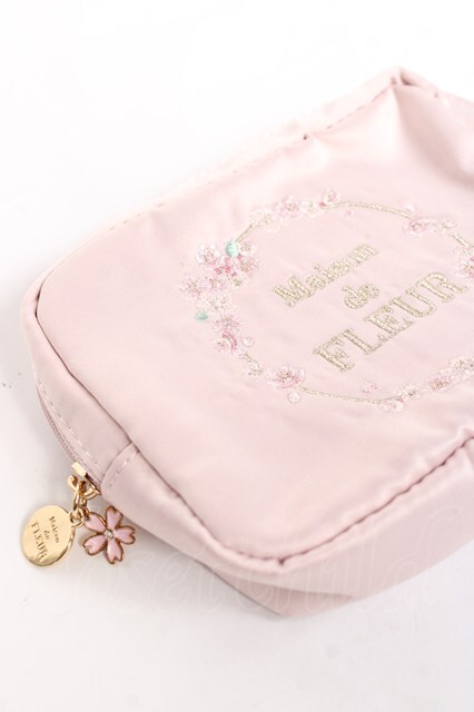 Maison de FLEUR / sakura刺繍スクエアポーチ F ピンク Y-25-11-09-025-LO-ZA-SZ-ZT487