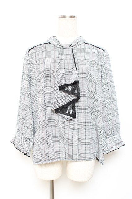 axes femme / カメオ付ラッフルフリルブラウス M グレー Y-25-11-09-065-AX-BL-SZ-ZI