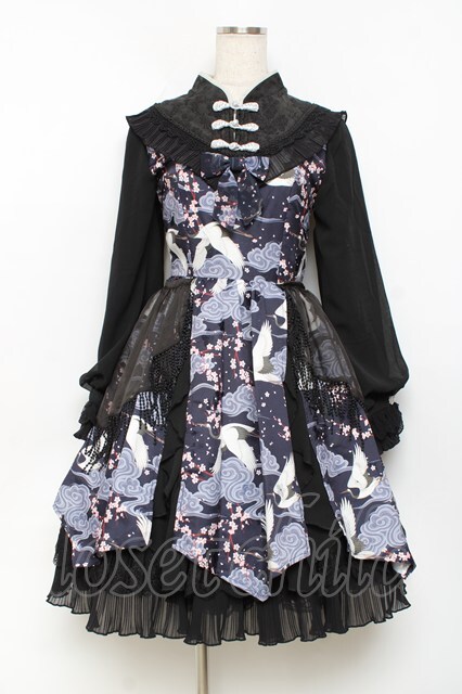 四叶工房 / 鶴デザインドレス 黒 Y-25-11-09-087-LO-OP-SZ-ZY [戻る]