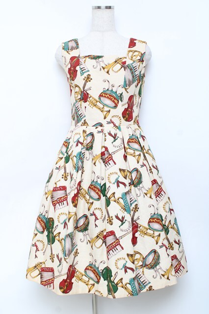 Jane Marple / 楽器柄ジャンパースカート M 生成り Y-25-11-09-088-JM-OP-SZ-ZY