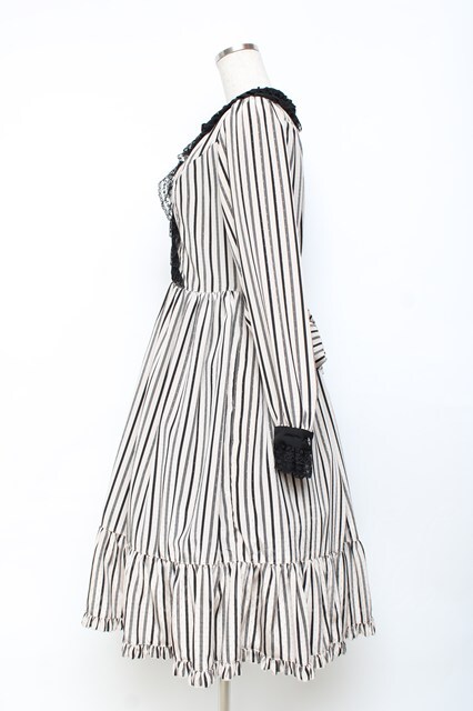 Physical Drop / レース衿ワンピース ストライプ×白黒 Y-25-11-09-093-LO-OP-SZ-ZY