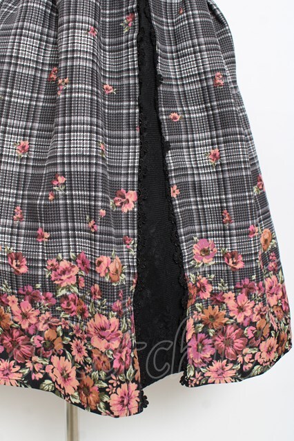 axes femme / チェック×花柄ワンピース 黒 Y-25-11-09-099-AX-OP-SZ-ZY