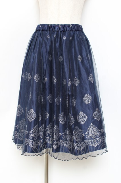axes femme / オーナメント柄チュールスカート M 紺 Y-25-11-09-118-AX-SK-SZ-ZY