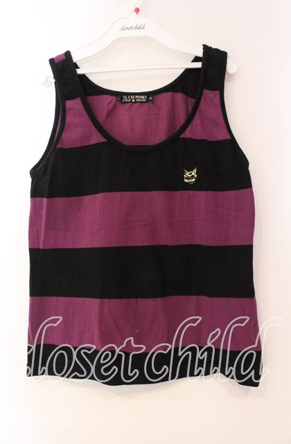 HELL CAT PUNKS / ワッペンボーダータンクトップ ブラック×パープル O-25-11-10-084-PU-TO-IG-OS