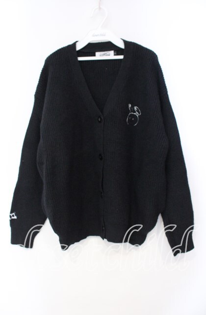 NieR Clothing / 刺繍入りニットカーディガン ブラック O-25-11-10-099-PU-TO-IG-ZT318