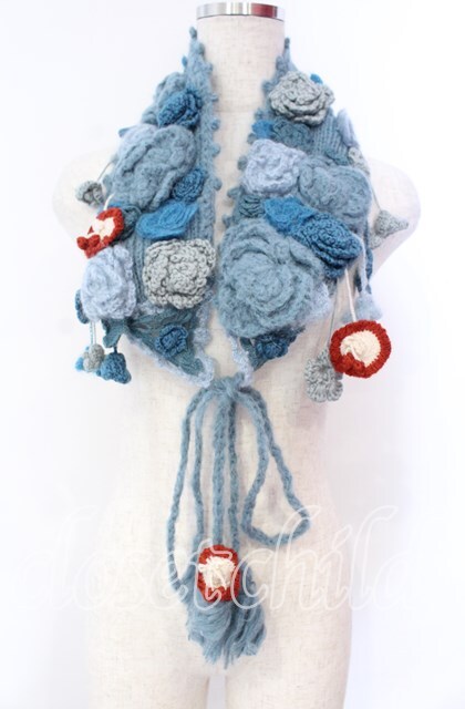 PINK HOUSE / フラワーモチーフモヘアティペット ブルー O-25-11-10-009-LO-ZA-IG-OS