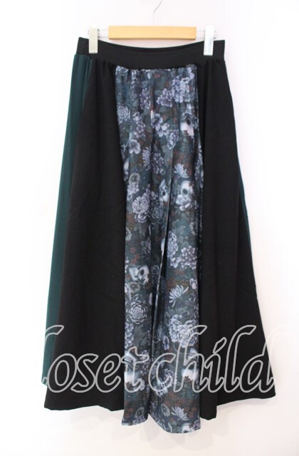 Qutie Frash / 和柄プリーツロングスカート グリーン O-25-11-10-027-QU-SK-IG-OS