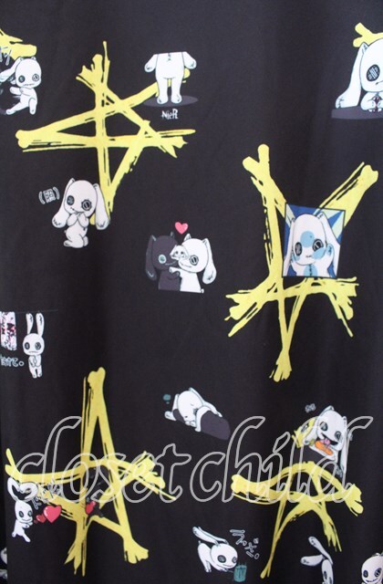 NieR Clothing / 転写Tシャツ ブラック×イエロー O-25-11-11-038-PU-TS-IG-ZT339