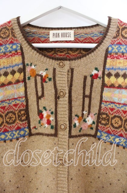 PINK HOUSE / フラワーデザインニットカーディガン ブラウン O-25-11-11-067-LO-TO-IG-OS
