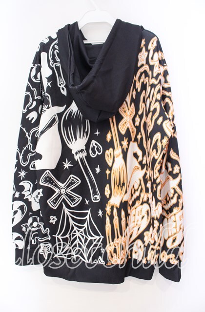 NieR Clothing / バイカラープリントパーカー ハロウィン柄 オレンジ×ホワイト×ブラック O-25-11-11-039-PU-TO-IG-ZT339