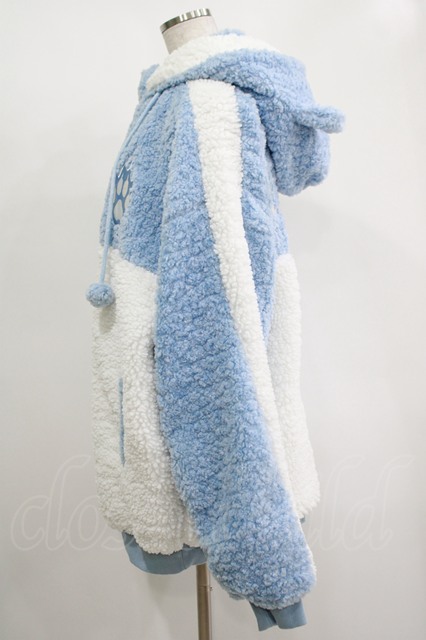 LISTEN FLAVOR / 猫耳肉球ファイヤーボアブルゾン ライトブルー×ホワイト H-25-11-17-035-PU-JA-KB-ZH