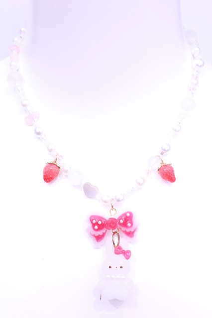 Haku Healing / うさぎとリボンのビーズネックレス シロ×アカ O-25-11-12-070-LO-AC-IG-OS