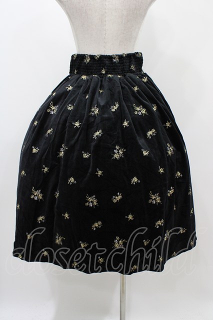 axes femme / 総刺繍ベロアスカート M ブラック H-25-11-18-1028-AX-SK-NS-ZH