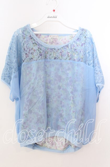 axes femme / レースシフォンレイヤード風トップス サックス O-25-11-11-2059-AX-TO-IG-ZT257