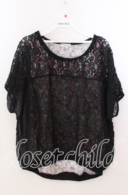 axes femme / レースシフォンレイヤード風トップス クロ O-25-11-11-2061-AX-TO-IG-ZT277