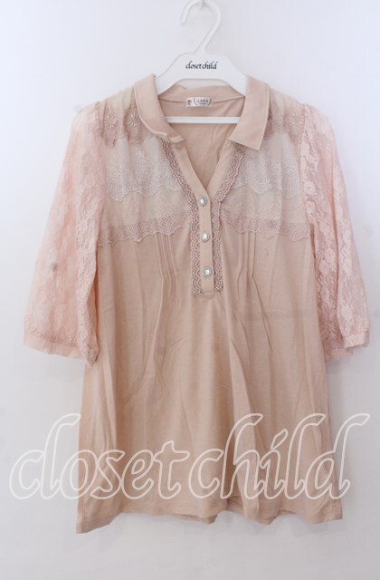 axes femme / 胸元レース使い襟付プルオーバー M ピンクベージュ O-25-11-11-2048-AX-TO-IG-OS [戻る]