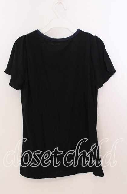 axes femme / 刺繍&レース半袖プルオーバー クロ O-25-11-11-2053-AX-TO-IG-OS