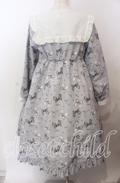 Lovely Tency / 眞白ありすコラボ/リボンプリントワンピース LL サックス O-25-11-11-2071-LO-OP-IG-OS