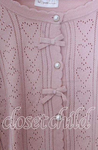 m petit by misako / AM*ハート透かしニットカーディガン 3L ピンク O-25-11-11-2096-LO-TO-IG-OS