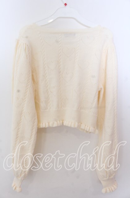 axes femme kawaii / ハート透かし長袖ニットカーデ アイボリー O-25-11-11-2077-AX-TO-IG-OS [戻る]