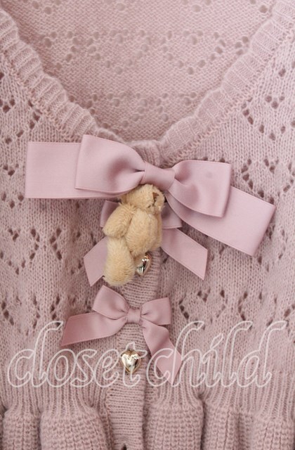 axes femme kawaii / クマブローチニットボレロ ピンク O-25-11-11-2081-AX-TO-IG-OS