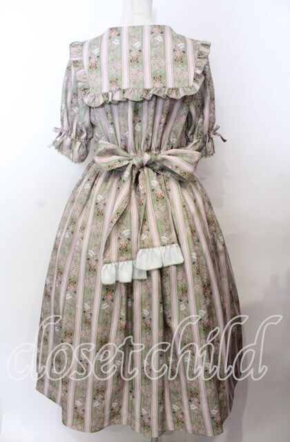axes femme kawaii / RosyBear柄ワンピース グリーン O-25-11-11-2069-AX-OP-IG-OS