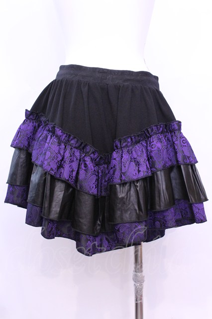 Qutie Frash / 3段フリルミニスカート ブラック×パープル O-25-11-13-026-QU-SK-OW-OS