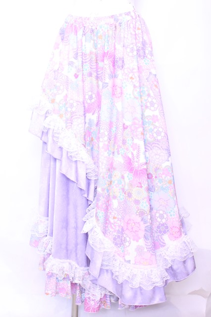 Qutie Frash / 和柄レースロングスカート ピンク O-25-11-13-028-QU-SK-OW-OS
