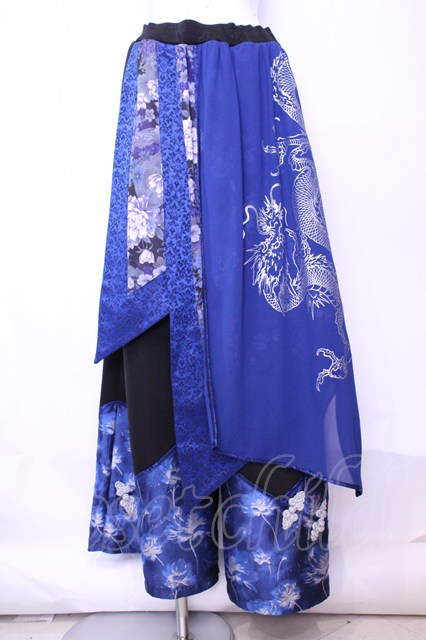 Qutie Frash / 和柄ワイドパンツ ブルー O-25-11-13-022-QU-PA-OW-OS