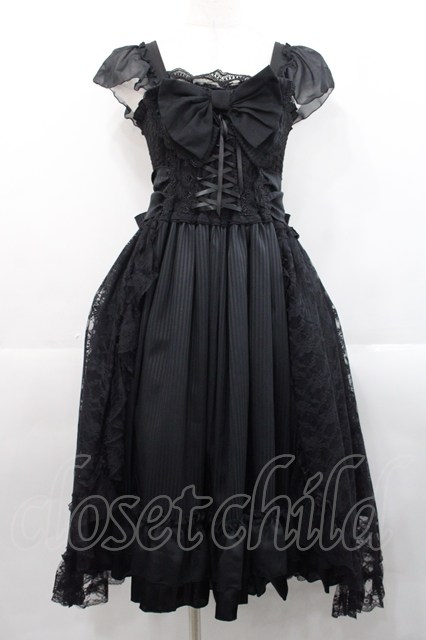 MR corset / リボン編み上げストライプジャンパースカート 黒 I-25-11-12-059-PU-OP-SA-ZI [戻る]