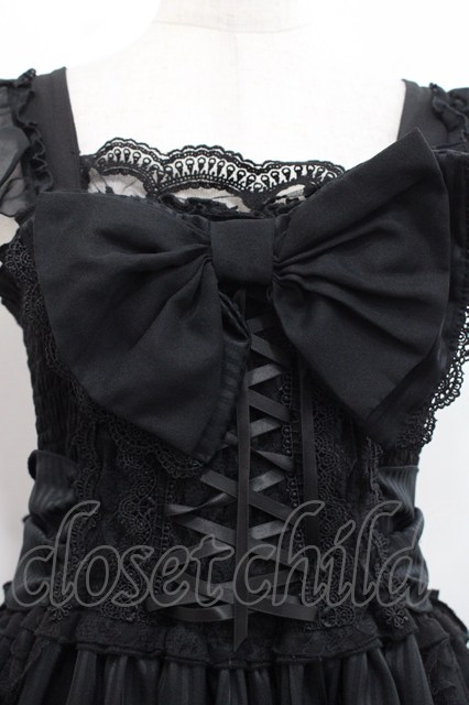 MR corset / リボン編み上げストライプジャンパースカート 黒 I-25-11-12-059-PU-OP-SA-ZI
