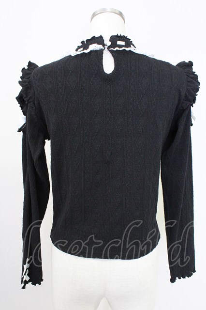 NOEMIE / ハイネックリボンパールニットトップス 黒Xシルバー T-25-11-14-015-LO-TO-SA-ZI