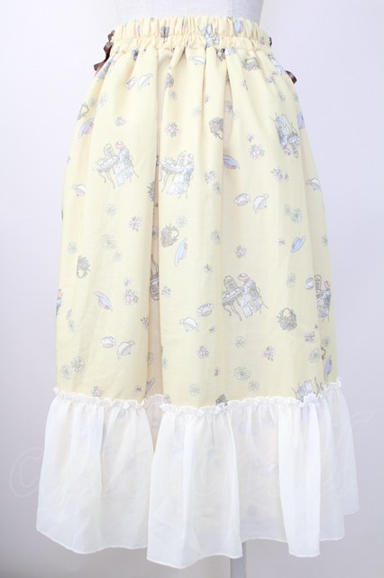 axes femme / ティータイム柄スカート イエロー T-25-11-14-023-AX-SK-SZ-ZI