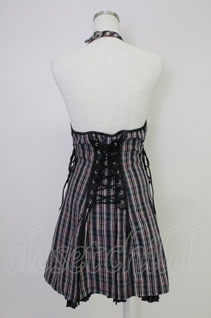 Ozz Croce / フロントZIPナナメチェックビスチェジャンパースカート 黒X赤チェック T-25-11-14-030-OO-OP-SA-ZT