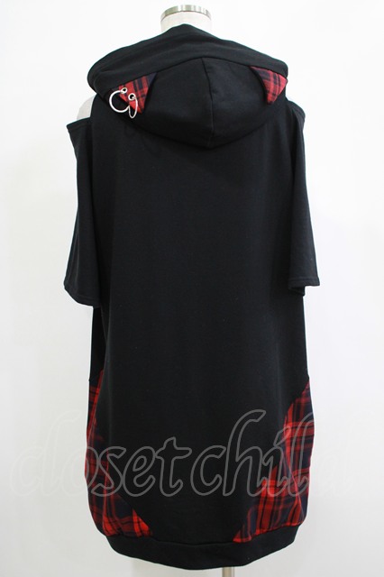NOEMIE / チェックネコ耳ハーフジップユニセックスパーカー M ブラック H-25-11-19-047-LO-TO-NS-ZH