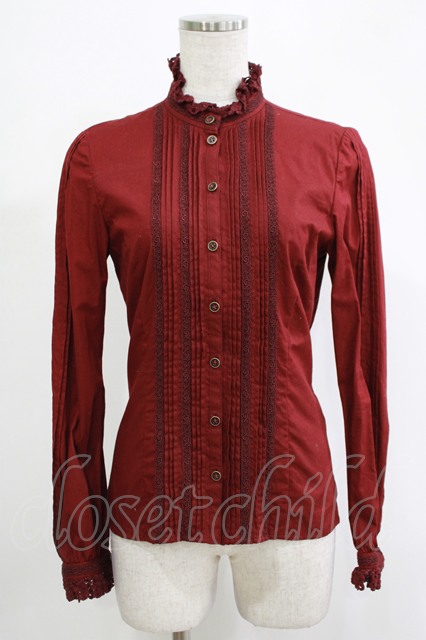 Victorian maiden / レースリボン付スタンドカラーブラウス Free ボルドー H-25-11-19-036-CL-BL-NS-ZH [戻る]