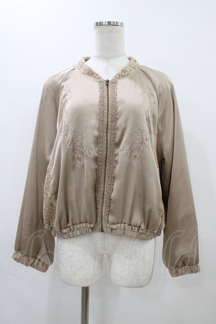 axes femme / 刺繍入りサテンブルゾン M ベージュ H-25-11-20-1057-AX-JA-NS-ZH