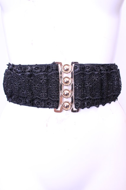 axes femme / レース使いゴムベルト クロ O-25-11-14-1030-AX-ZA-OW-OS