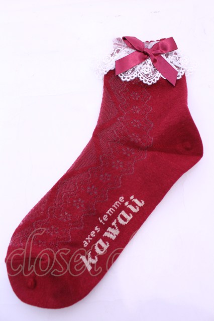 axes femme kawaii / 透かしレースアップ柄ソックス ワイン O-25-11-14-1058-AX-ZA-OW-OS