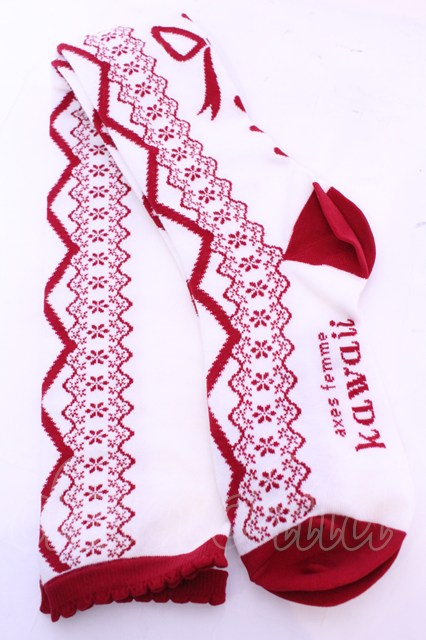axes femme kawaii / レースアップ柄オーバーニー アカ O-25-11-14-1059-AX-ZA-OW-OS