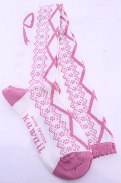 axes femme kawaii / レースアップ柄オーバーニー ピンク O-25-11-14-1060-AX-ZA-OW-OS