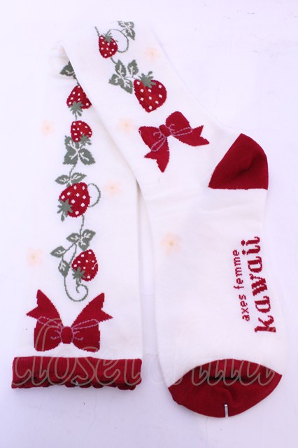 axes femme kawaii / いちご柄オーバーニー アカ O-25-11-14-1046-AX-ZA-OW-OS