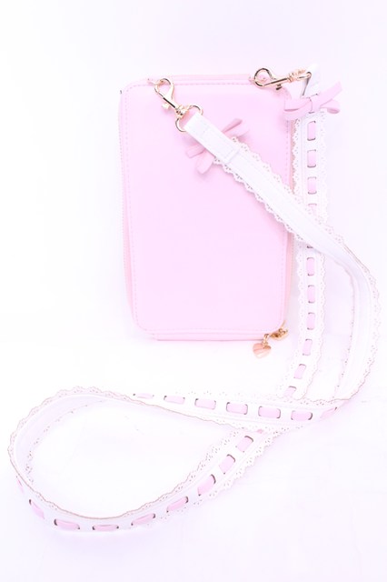 Chalmiere / ガーリーリボンマルチポシェット ピンク×シロ O-25-11-14-1005-LO-BG-OW-ZT432